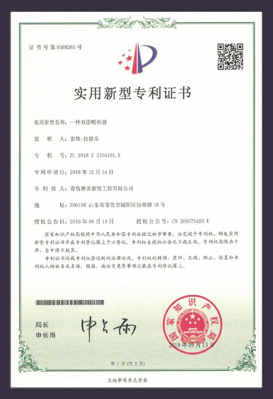 ?雙面喂食器專利證書