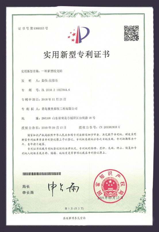 絞龍軸專利證書