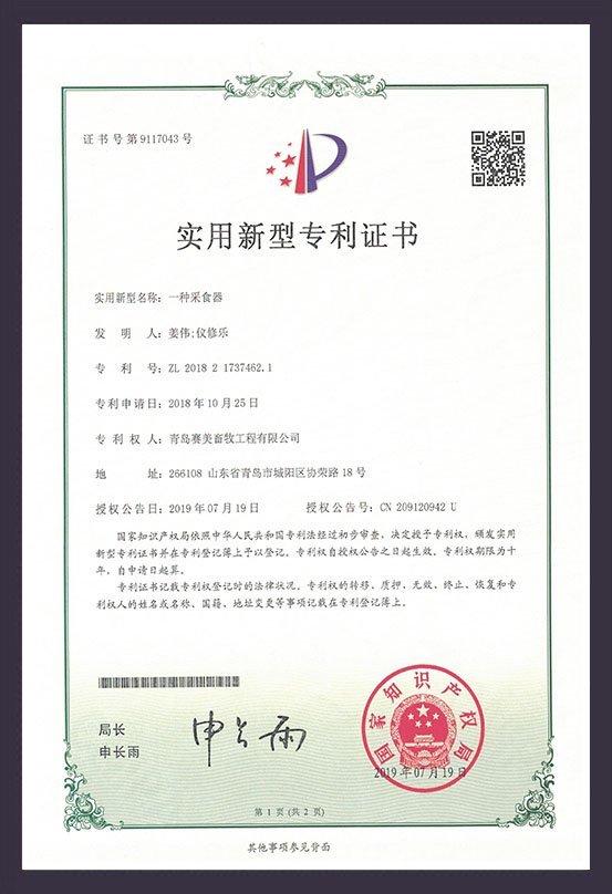 ?采食器專利證書
