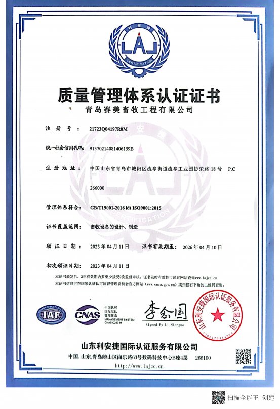 ?質量管理體系認證證書英文